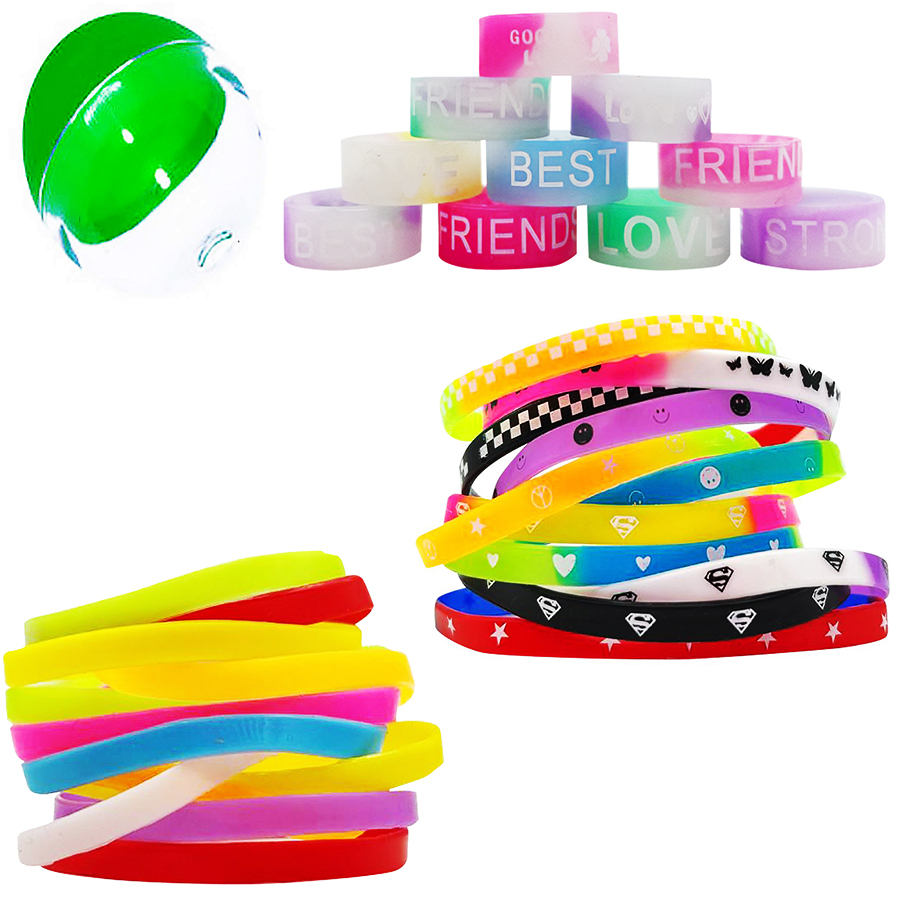 Интересный комлеккт с силиконовыми браслетами и колечками! Но колечки наши не обычные, а светящиеся в темноте!