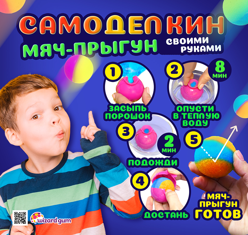 5) разожми форму, подожди и получи мяч-прыгун из 2-х цветов.