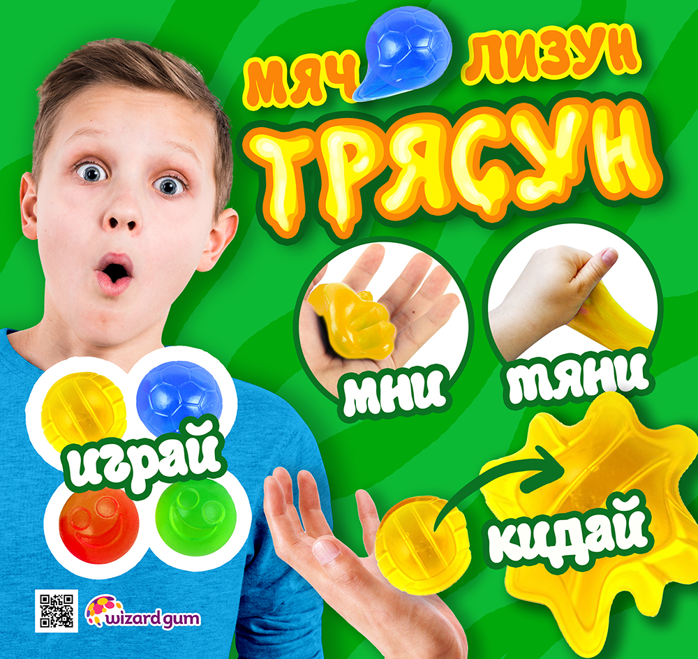 Мячик-трясун изготовлен из материала, очень похожего на желейную консистенцию. Он прикольно трясется в руке и очень нравится детям.