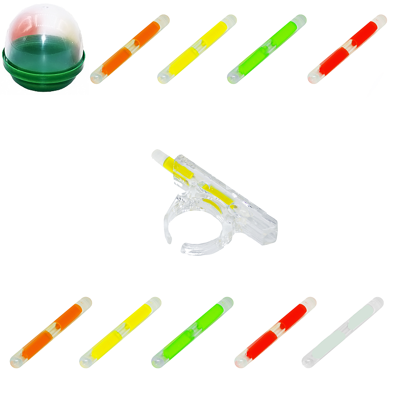 В капсуле набор из 2-х пакетов: с основными изделиями и с неоновыми палочками.