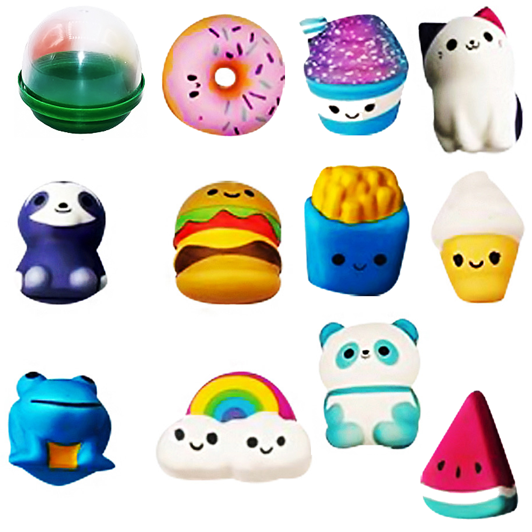 В данном комплекте представлены как обычные бархатные сквиши, так и игрушки, которые светятся в темноте.