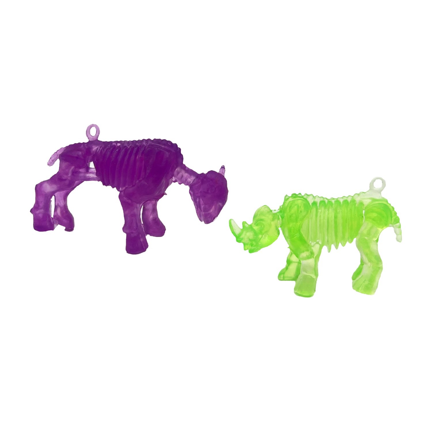 Оригинальные полупрозрачные цветные фигурки скелетов животных.