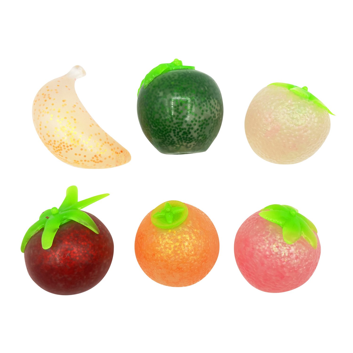 Антистрессовые игрушки-мялки в виде сочных фруктов с переливающимися блёстками внутри. Идеально развивают моторику, снимают напряжение и стимулируют тактильные ощущения.