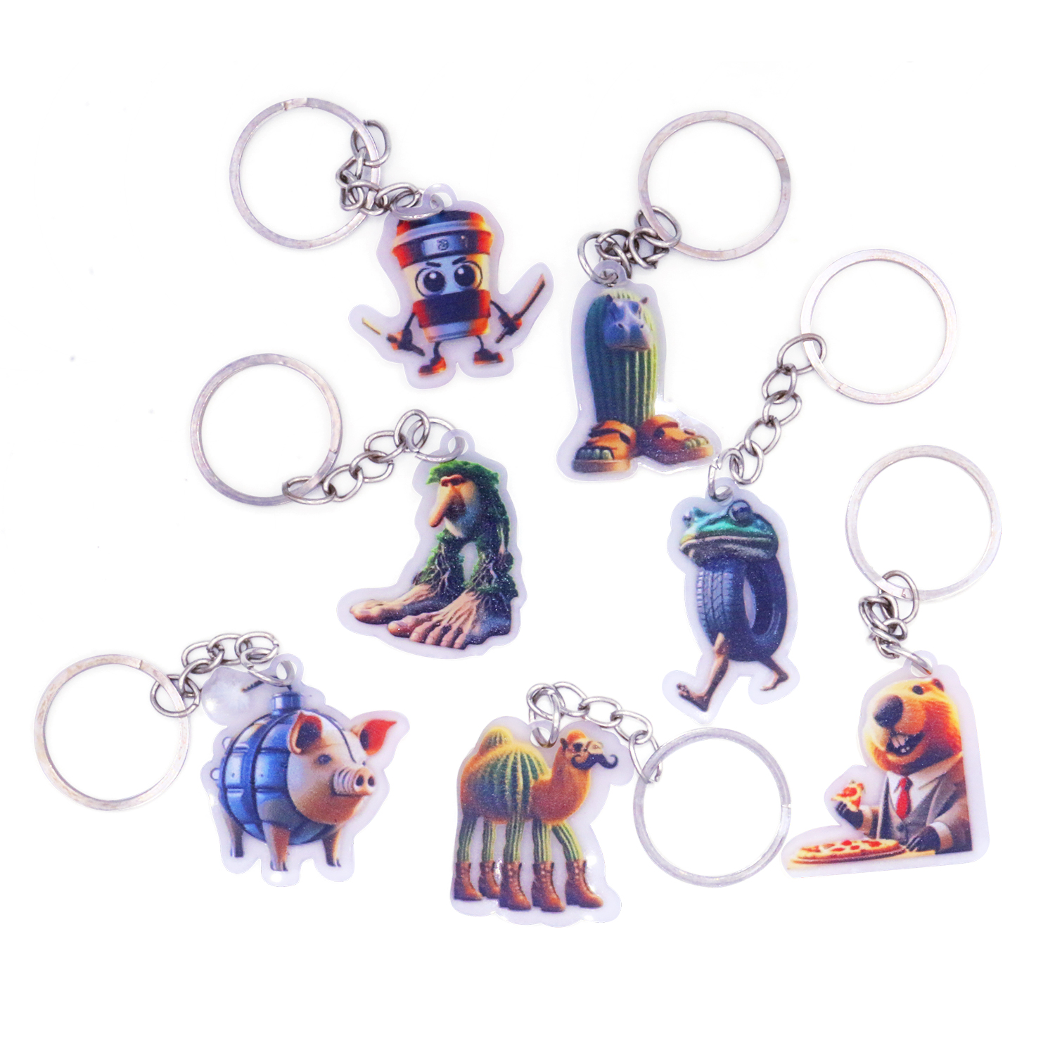 Оригинальный модный брелок с изображением абсурдных и абсолютно бессмысленных персонажей, которых генеририрует ИИ.