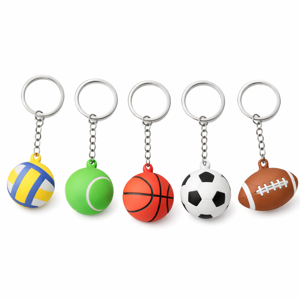 Модный брелок с различными видам мячей.