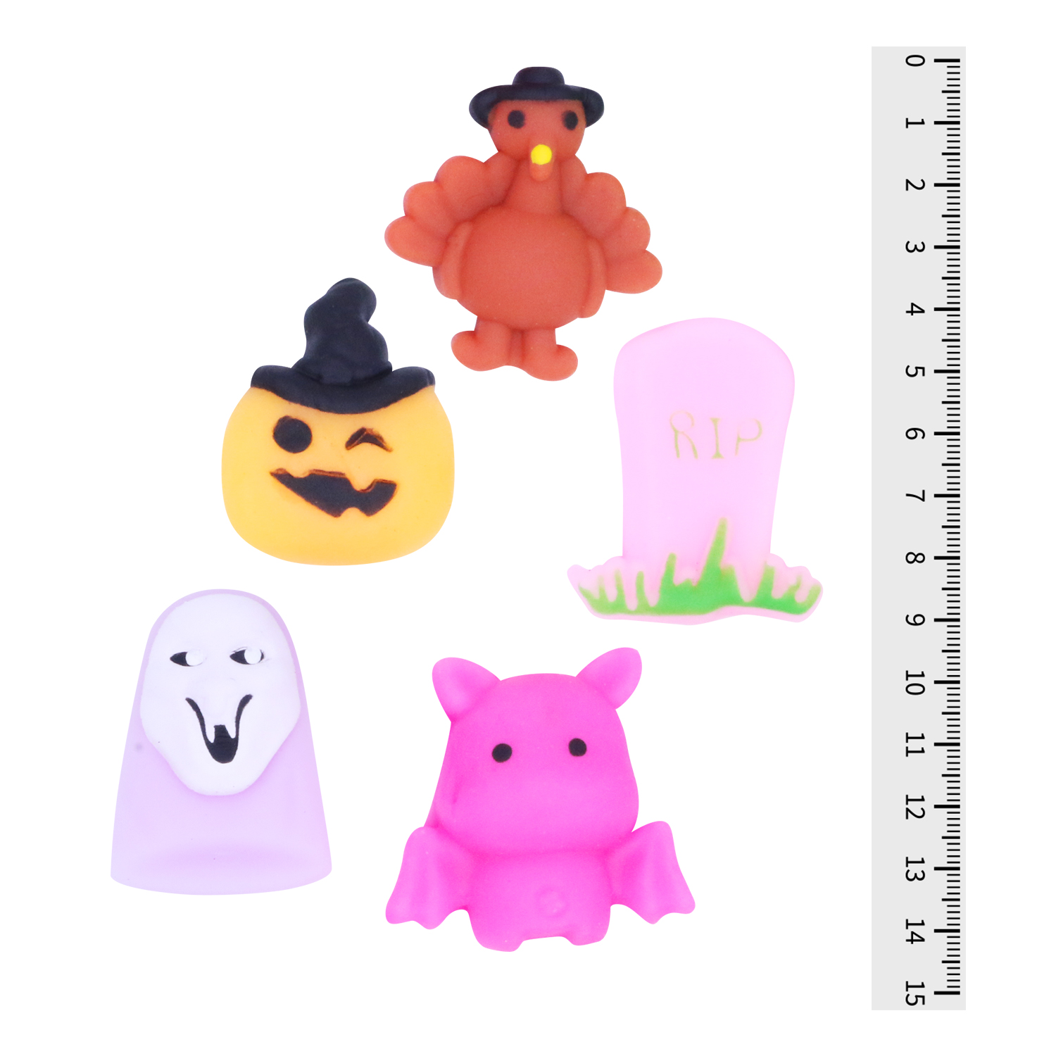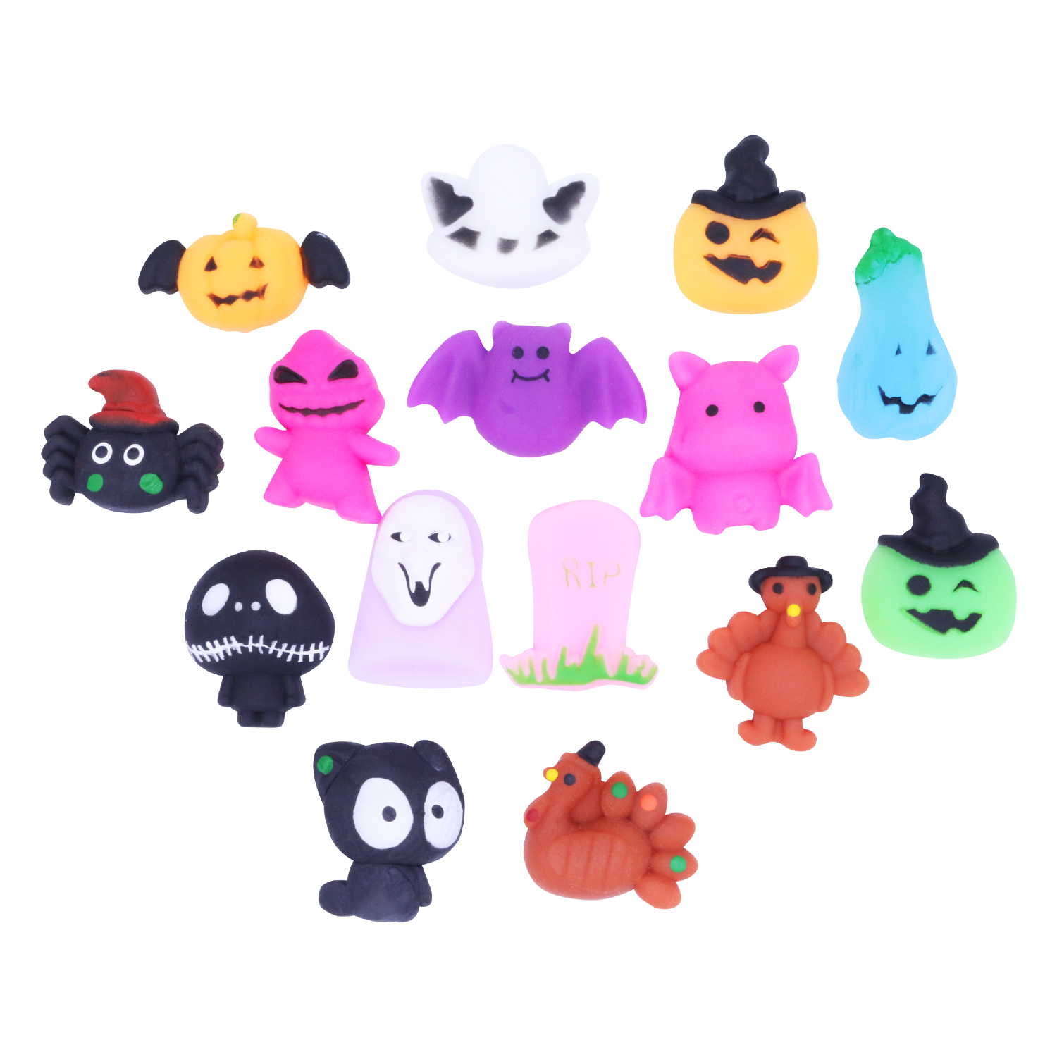 Большая коллекция сквишей с изображением персонажей Хеллоуина.