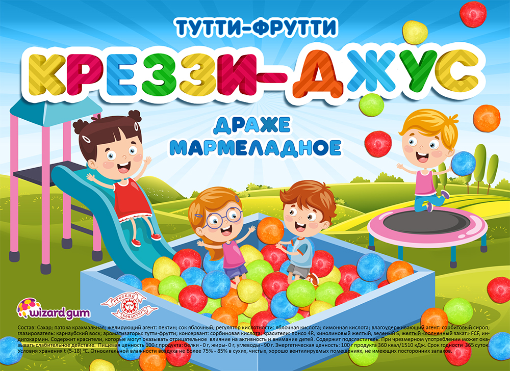 Драже Креззи-Джус "Тутти-фрутти" - вкусное лакомство для всех сладкоежек с ароматом тутти-фрутти. На пектине!