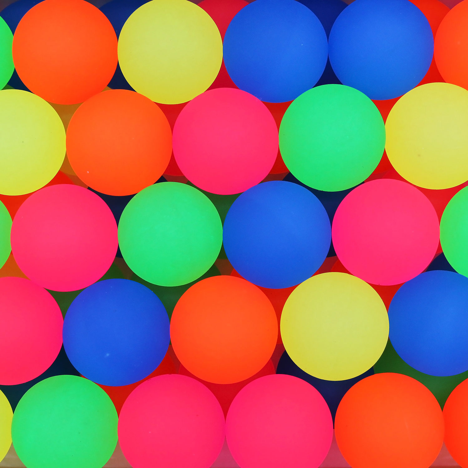 Набор разноцветных неоновых мячей-прыгунов шероховатых, но приятных на ощупь в пяти расцветках: синий, ярко-розовый, салатовый, оранжевый, желтый.