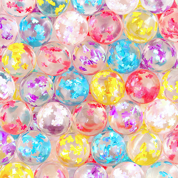 Сумасшедщий микс мячей - прыгунов. Полупрозрачные с милыми, как бы застывшими, цветочками внутри! Очень романтично!