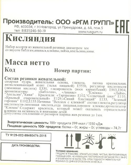 Жевательная резинка от самого известного российского производителя сладкого наполнителя для торговых механических автоматов - Rusgum. Красочная по цветам глянцевая глазурь жевательной резинки замечательно держит форму и устойчива к температурным изменениям. Большое разнообразие фруктовых и ягодных вкусов несомненно порадуют и взрослого и ребенка. Жевательная резинка при покупке через торговые механические автоматы станет отличным поводом для соревнования детей по надуванию больших пузырей и создаст прекрасное настроение на целый день.