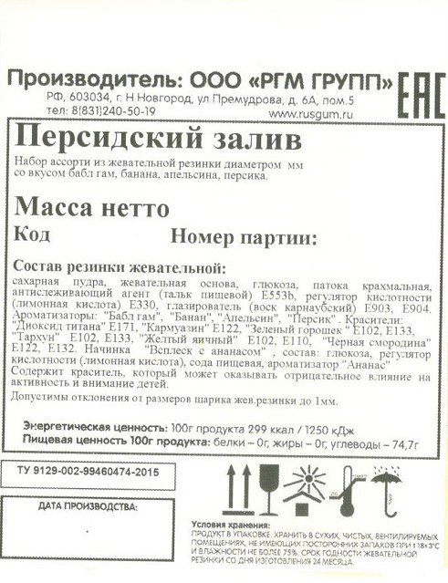 Жевательная резинка от самого известного российского производителя сладкого наполнителя для торговых механических автоматов - Rusgum. Красочная по цветам глянцевая глазурь жевательной резинки замечательно держит форму и устойчива к температурным изменениям. Большое разнообразие фруктовых и ягодных вкусов несомненно порадуют и взрослого и ребенка. Жевательная резинка при покупке через торговые механические автоматы станет отличным поводом для соревнования детей по надуванию больших пузырей и создаст прекрасное настроение на целый день.