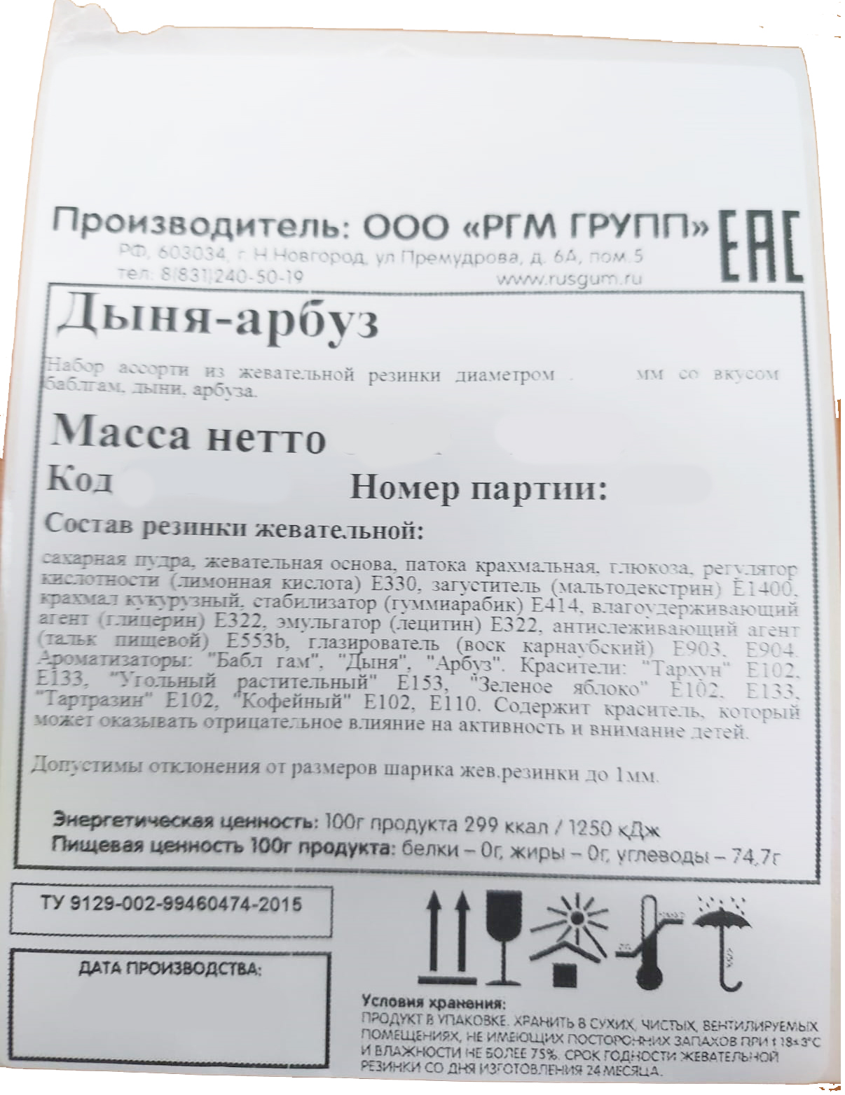 Желтая жвачка имеет бочек, напоминающий спелую дыню, а зеленая имеет рисунок, похожий на спелый арбуз.