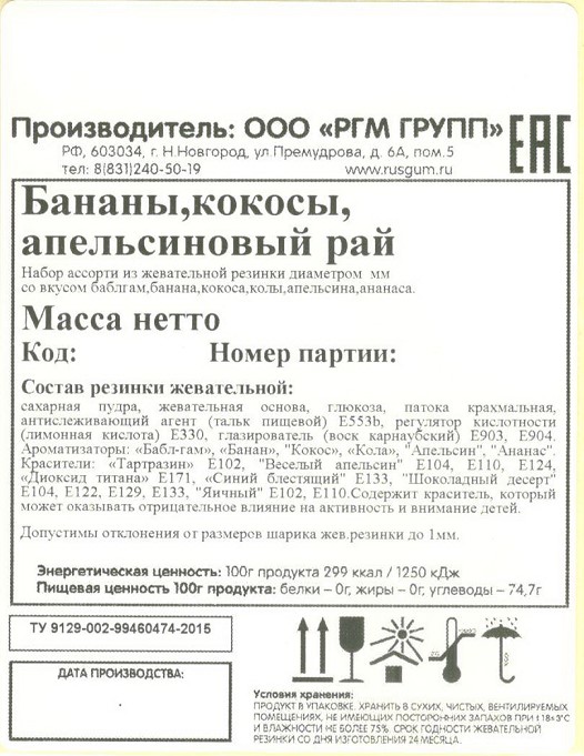 Жевательная резинка от самого известного российского производителя сладкого наполнителя для торговых механических автоматов - Rusgum. Красочная по цветам глянцевая глазурь жевательной резинки замечательно держит форму и устойчива к температурным изменениям. Большое разнообразие фруктовых и ягодных вкусов несомненно порадуют и взрослого и ребенка. Жевательная резинка при покупке через торговые механические автоматы станет отличным поводом для соревнования детей по надуванию больших пузырей и создаст прекрасное настроение на целый день.