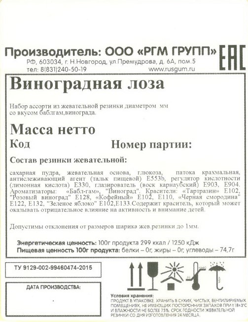 Жевательная резинка от самого известного российского производителя сладкого наполнителя для торговых механических автоматов - Rusgum. Красочная по цветам глянцевая глазурь жевательной резинки замечательно держит форму и устойчива к температурным изменениям. Большое разнообразие фруктовых и ягодных вкусов несомненно порадуют и взрослого и ребенка. Жевательная резинка при покупке через торговые механические автоматы станет отличным поводом для соревнования детей по надуванию больших пузырей и создаст прекрасное настроение на целый день.