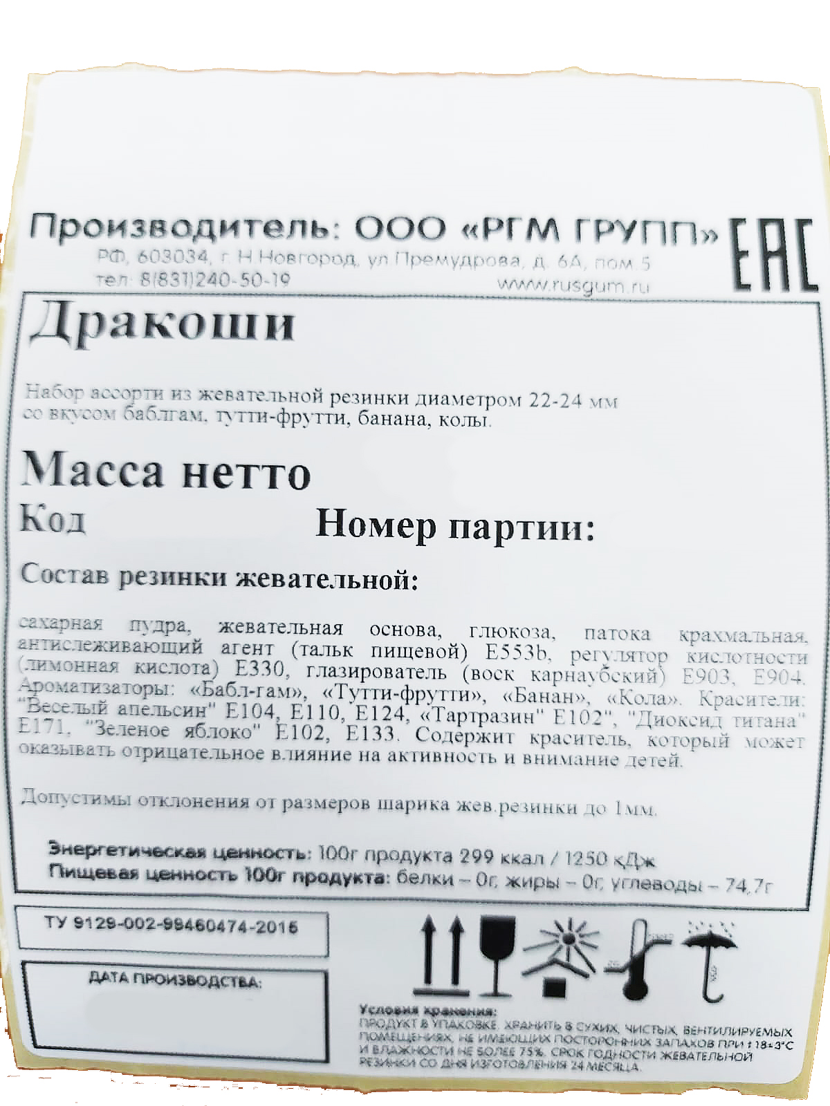 Жевательная резинка от самого известного российского производителя сладкого наполнителя для торговых механических автоматов - Rusgum. Красочная по цветам глянцевая глазурь жевательной резинки замечательно держит форму и устойчива к температурным изменениям. Большое разнообразие фруктовых и ягодных вкусов несомненно порадуют и взрослого и ребенка. Жевательная резинка при покупке через торговые механические автоматы станет отличным поводом для соревнования детей по надуванию больших пузырей и создаст прекрасное настроение на целый день.