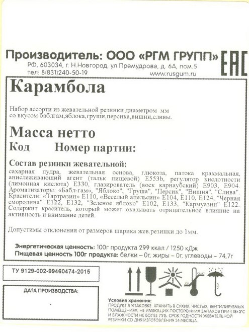 Жевательная резинка от самого известного российского производителя сладкого наполнителя для торговых механических автоматов - Rusgum. Красочная по цветам глянцевая глазурь жевательной резинки замечательно держит форму и устойчива к температурным изменениям. Большое разнообразие фруктовых и ягодных вкусов несомненно порадуют и взрослого и ребенка. Жевательная резинка при покупке через торговые механические автоматы станет отличным поводом для соревнования детей по надуванию больших пузырей и создаст прекрасное настроение на целый день.