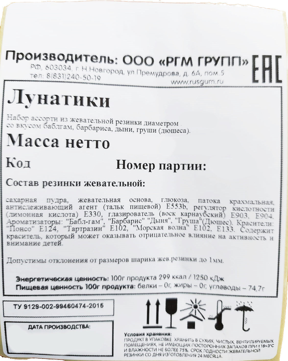 Жевательная резинка от самого известного российского производителя сладкого наполнителя для торговых механических автоматов - Rusgum. Красочная по цветам глянцевая глазурь жевательной резинки замечательно держит форму и устойчива к температурным изменениям. Большое разнообразие фруктовых и ягодных вкусов несомненно порадуют и взрослого и ребенка. Жевательная резинка при покупке через торговые механические автоматы станет отличным поводом для соревнования детей по надуванию больших пузырей и создаст прекрасное настроение на целый день.