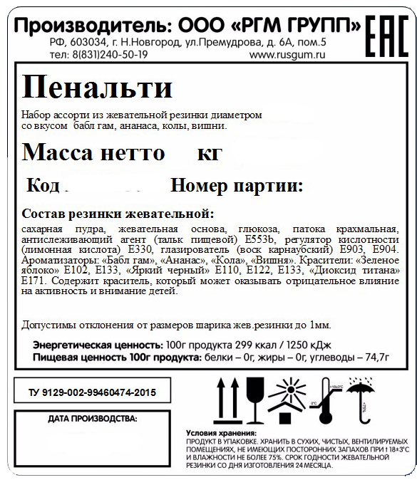 Жевательная резинка от самого известного российского производителя сладкого наполнителя для торговых механических автоматов - Rusgum. Красочная по цветам глянцевая глазурь жевательной резинки замечательно держит форму и устойчива к температурным изменениям. Большое разнообразие фруктовых и ягодных вкусов несомненно порадуют и взрослого и ребенка. Жевательная резинка при покупке через торговые механические автоматы станет отличным поводом для соревнования детей по надуванию больших пузырей и создаст прекрасное настроение на целый день.