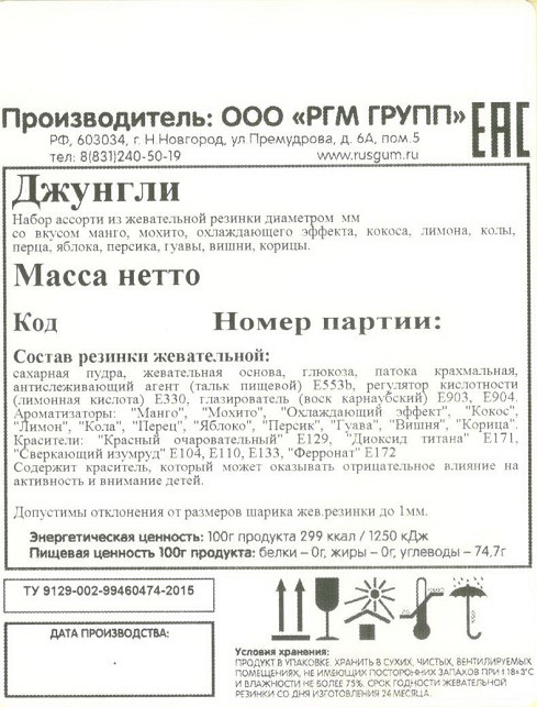 Жевательная резинка от самого известного российского производителя сладкого наполнителя для торговых механических автоматов - Rusgum. Красочная по цветам глянцевая глазурь жевательной резинки замечательно держит форму и устойчива к температурным изменениям. Большое разнообразие фруктовых и ягодных вкусов несомненно порадуют и взрослого и ребенка. Жевательная резинка при покупке через торговые механические автоматы станет отличным поводом для соревнования детей по надуванию больших пузырей и создаст прекрасное настроение на целый день.