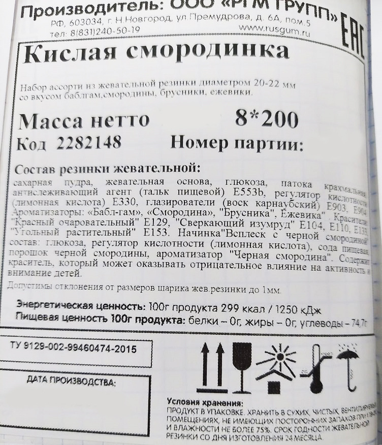 Жевательная резинка от самого известного российского производителя сладкого наполнителя для торговых механических автоматов - Rusgum. Красочная по цветам глянцевая глазурь жевательной резинки замечательно держит форму и устойчива к температурным изменениям. Большое разнообразие фруктовых и ягодных вкусов несомненно порадуют и взрослого и ребенка. Жевательная резинка при покупке через торговые механические автоматы станет отличным поводом для соревнования детей по надуванию больших пузырей и создаст прекрасное настроение на целый день.