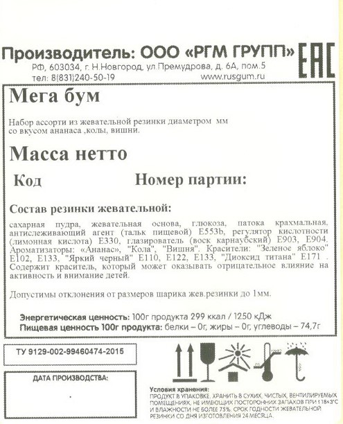 Жевательная резинка от самого известного российского производителя сладкого наполнителя для торговых механических автоматов - Rusgum. Красочная по цветам глянцевая глазурь жевательной резинки замечательно держит форму и устойчива к температурным изменениям. Большое разнообразие фруктовых и ягодных вкусов несомненно порадуют и взрослого и ребенка. Жевательная резинка при покупке через торговые механические автоматы станет отличным поводом для соревнования детей по надуванию больших пузырей и создаст прекрасное настроение на целый день.