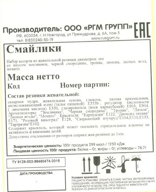 Жевательная резинка от самого известного российского производителя сладкого наполнителя для торговых механических автоматов - Rusgum. Красочная по цветам глянцевая глазурь жевательной резинки замечательно держит форму и устойчива к температурным изменениям. Большое разнообразие фруктовых и ягодных вкусов несомненно порадуют и взрослого и ребенка. Жевательная резинка при покупке через торговые механические автоматы станет отличным поводом для соревнования детей по надуванию больших пузырей и создаст прекрасное настроение на целый день.