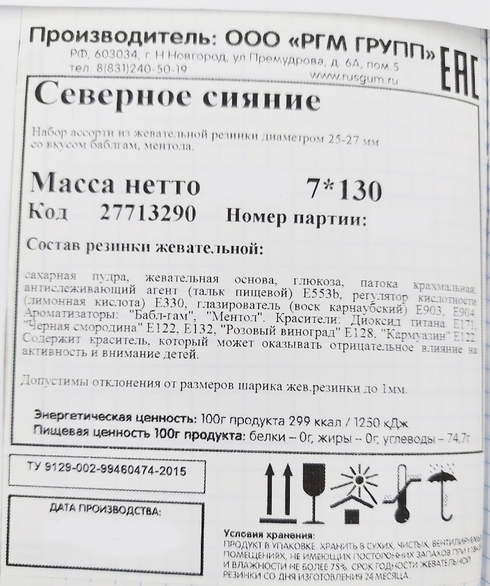 Жевательная резинка от самого известного российского производителя сладкого наполнителя для торговых механических автоматов - Rusgum. Красочная по цветам глянцевая глазурь жевательной резинки замечательно держит форму и устойчива к температурным изменениям. Большое разнообразие фруктовых и ягодных вкусов несомненно порадуют и взрослого и ребенка. Жевательная резинка при покупке через торговые механические автоматы станет отличным поводом для соревнования детей по надуванию больших пузырей и создаст прекрасное настроение на целый день.