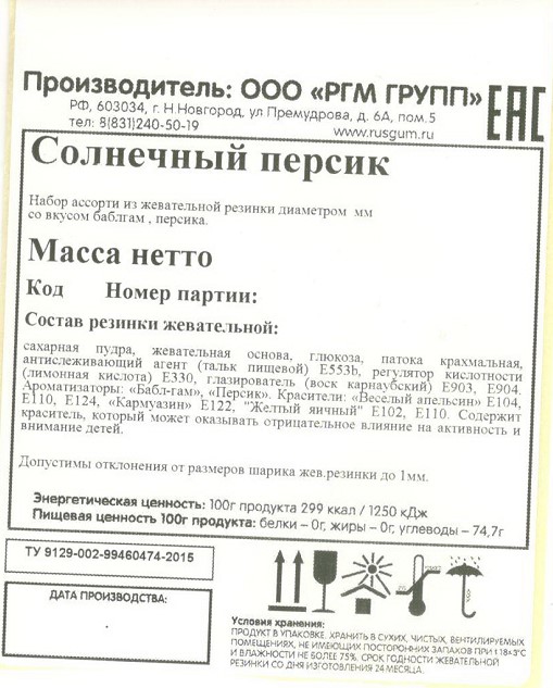Жевательная резинка от самого известного российского производителя сладкого наполнителя для торговых механических автоматов - Rusgum. Красочная по цветам глянцевая глазурь жевательной резинки замечательно держит форму и устойчива к температурным изменениям. Большое разнообразие фруктовых и ягодных вкусов несомненно порадуют и взрослого и ребенка. Жевательная резинка при покупке через торговые механические автоматы станет отличным поводом для соревнования детей по надуванию больших пузырей и создаст прекрасное настроение на целый день.