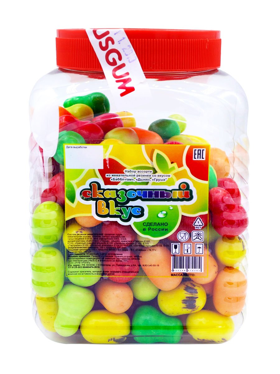 Жевательная резинка от самого известного российского производителя сладкого наполнителя для торговых механических автоматов - Rusgum. Красочная по цветам глянцевая глазурь жевательной резинки замечательно держит форму и устойчива к температурным изменениям. Большое разнообразие фруктовых и ягодных вкусов несомненно порадуют и взрослого и ребенка. Жевательная резинка при покупке через торговые механические автоматы станет отличным поводом для соревнования детей по надуванию больших пузырей и создаст прекрасное настроение на целый день.