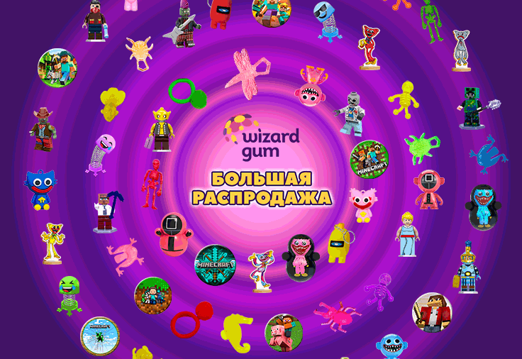 Ассортимент реально большой: это и лизуны, и скелеты, конструкторы, и стрелялки, и попсокеты, и кольца, и неваляшки, и коллекция "Хагги Вагги", и конструкторы "Шалтай-болтай, и попсокеты, и пупырки "Сквидопопы".