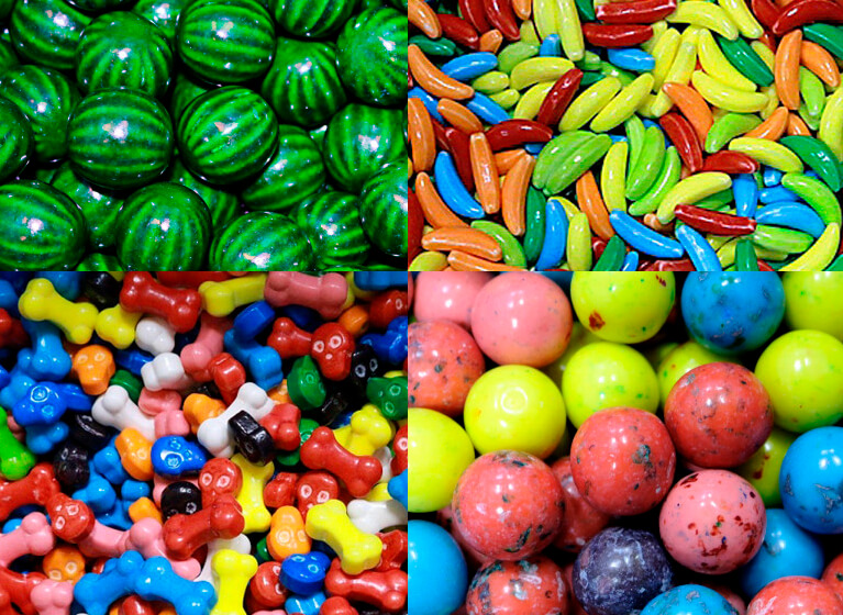 В ассортименте новые жвачки с самыми разными вкусами: сочный виноград, ароматные арбузики, кислая сахарная вата, лимонад. А еще много разноцветных конфет: «Галактика», «Тропические фрукты», «Черепа и косточки»!