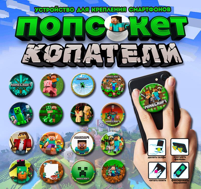 Специальное предложение только для своих! Популярный наполнитель — попсокеты "Копатели". Сюжет коллекции построен по мотивам популярной компьютерной игры, столь любимой современными подростками.