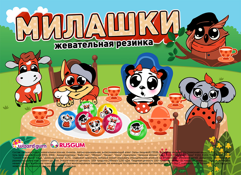 Прекрасное обновление: в линейке любимых жевательных резинок RUSGUM очередная новинка – ЖР с принтом «Милашки»! Яркие, смелые цвета, очаровательный принт с ми-ми-мишными персонажами и неизменно богатый вкус! Они стоят того, чтобы попробовать!