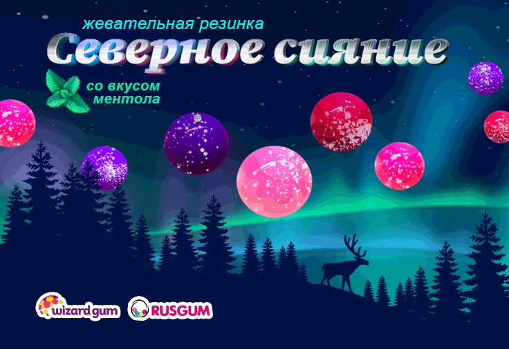 Мы не хотим, чтобы Вы бросали все дела и ехали далеко на север за такими вот яркими эмоциями и впечатлениями. Ведь здесь и сейчас – в Wizardgum - в продаже появились притягивающие взгляды, похожие на маленькие планеты, будто бы светящиеся и переливающиеся, и, к тому же, невероятно вкусные и освежающие жевательные резинки 22 мм «Северное сияние» со вкусом ментола!