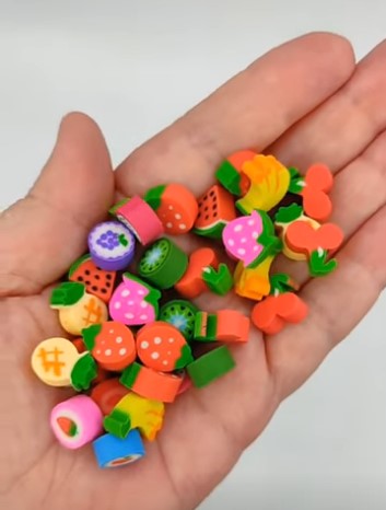—Коллекция овощей и фруктов в виде маленьких ластиков