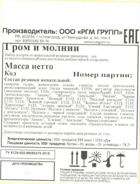 Жевательная резинка 27 мм с шипучкой "Гром и молния"