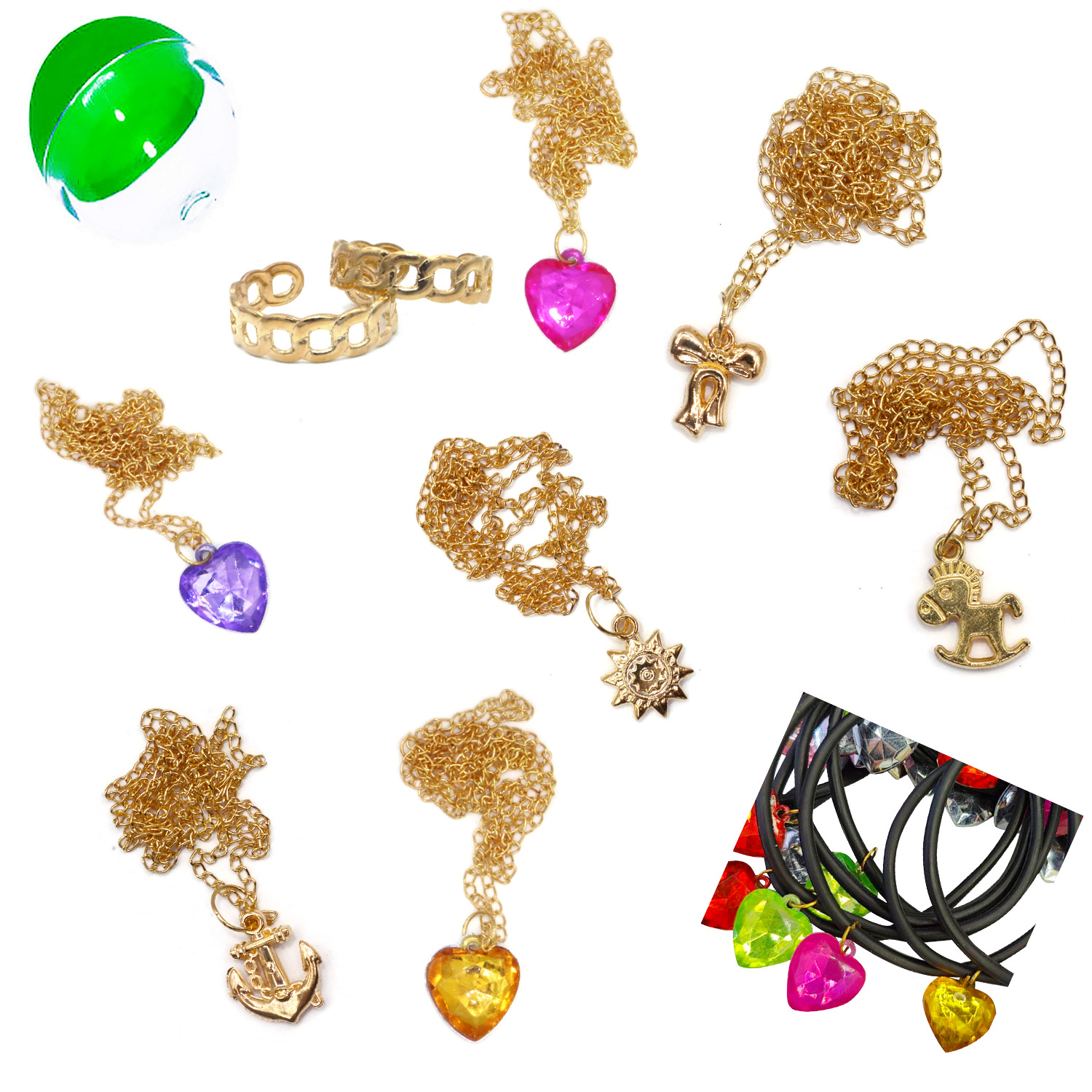 Комплект бижутерии. Цепочки с кулонами, барслеты, кольца.