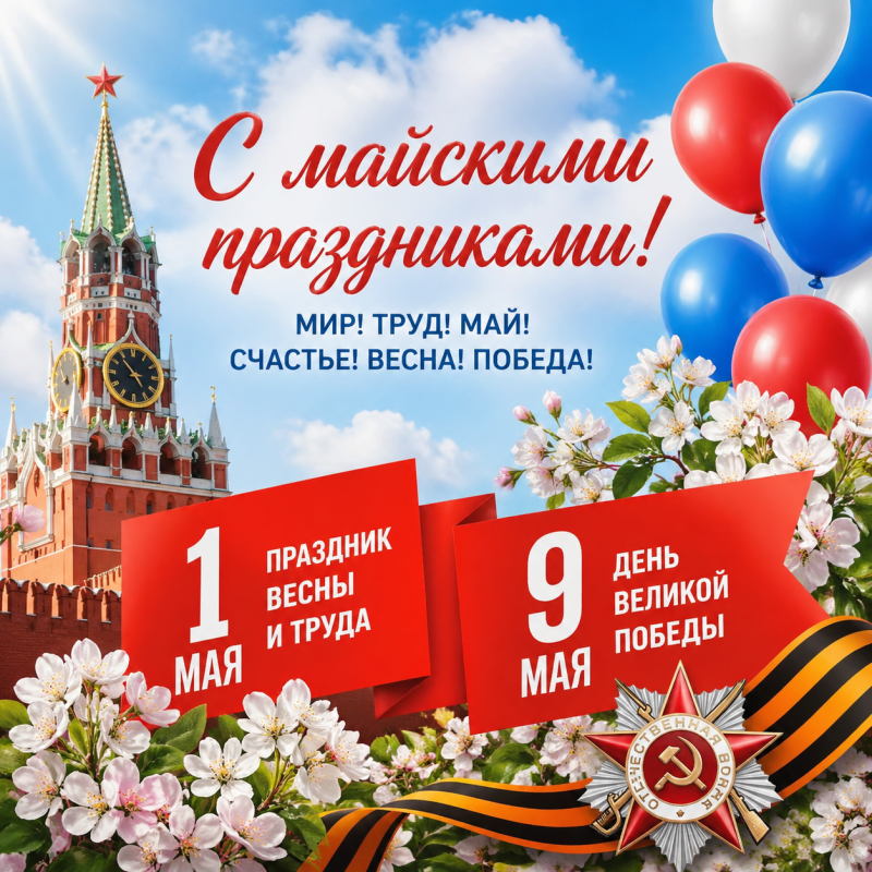 График работы на майские праздники 2026 года!